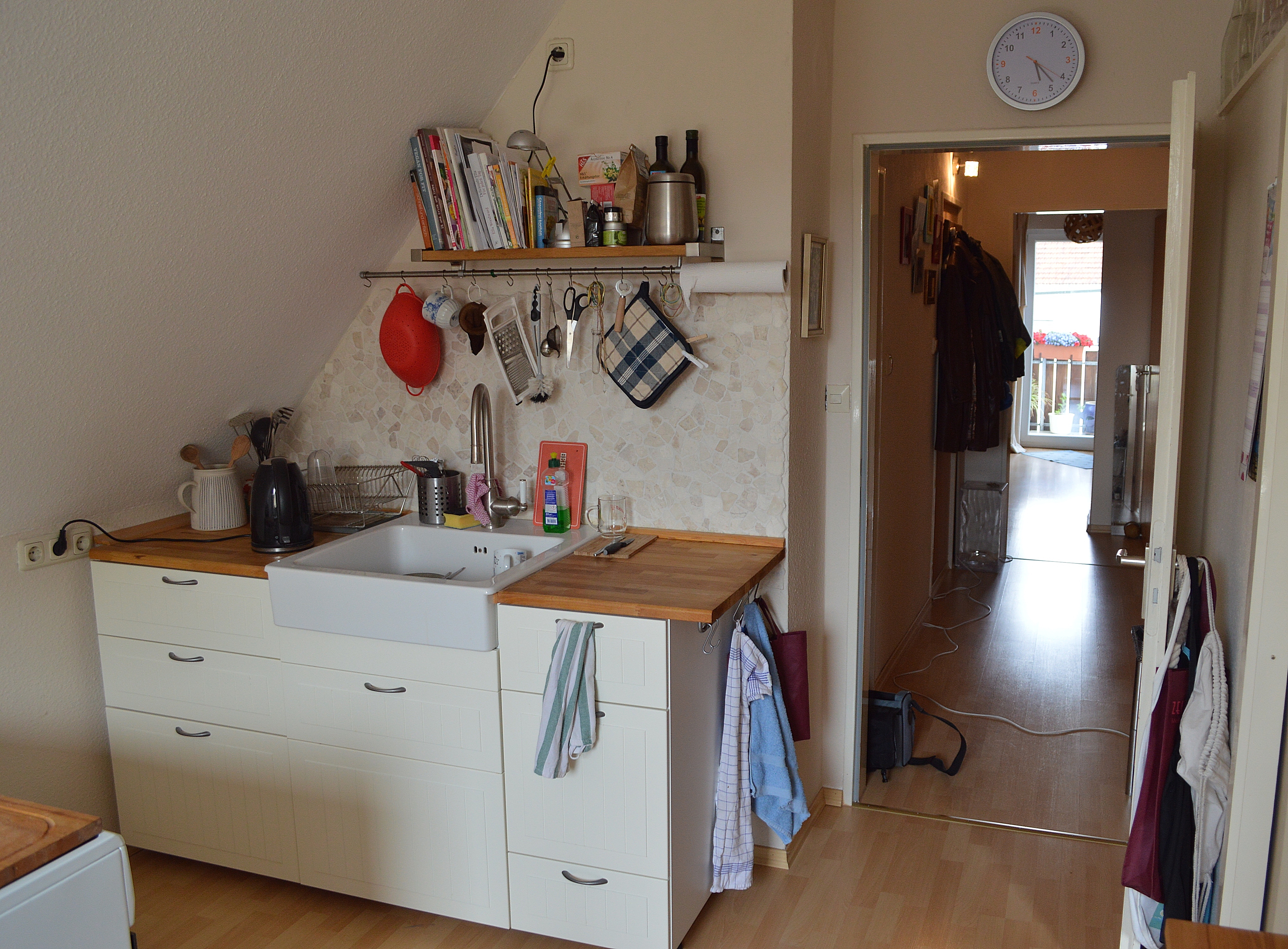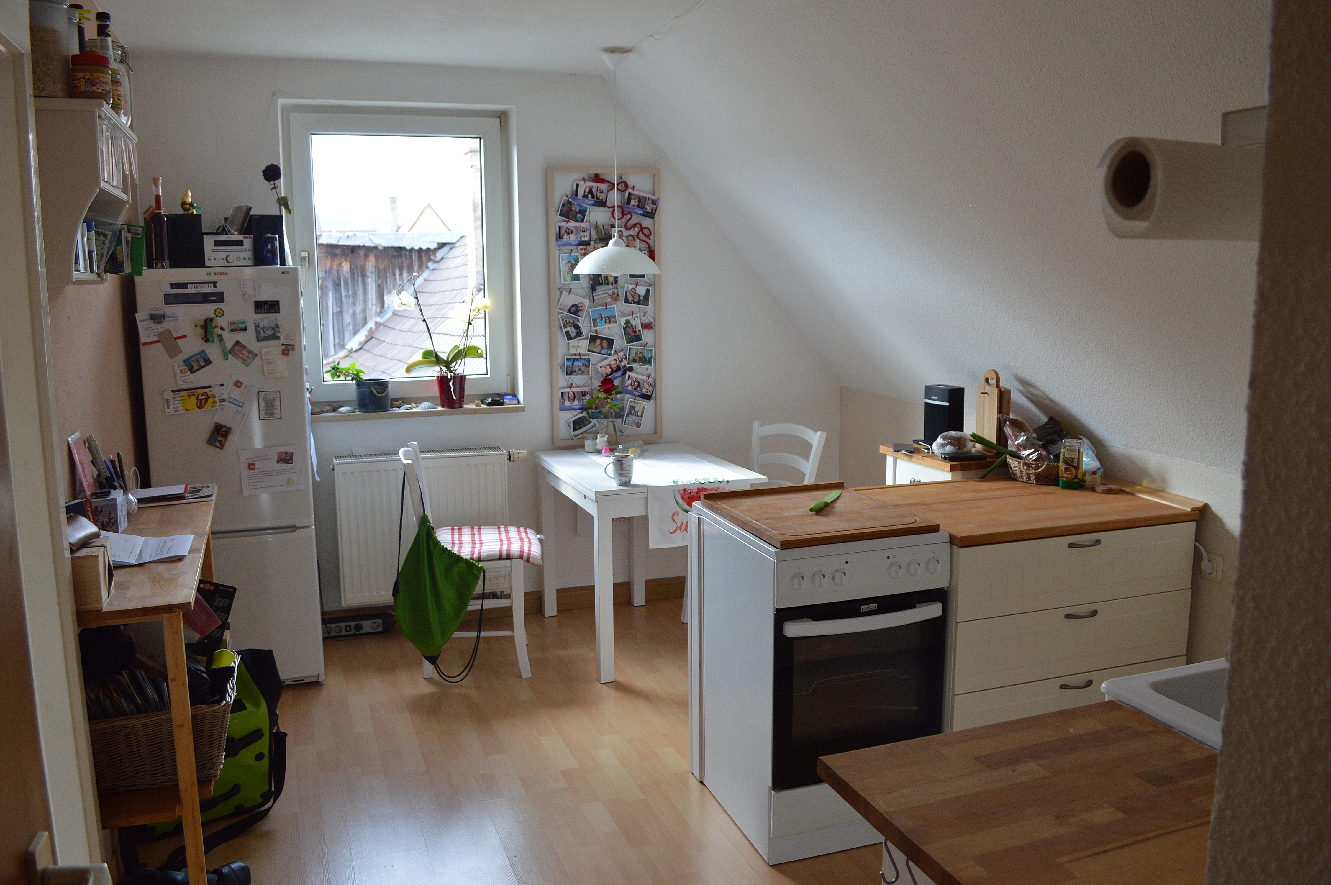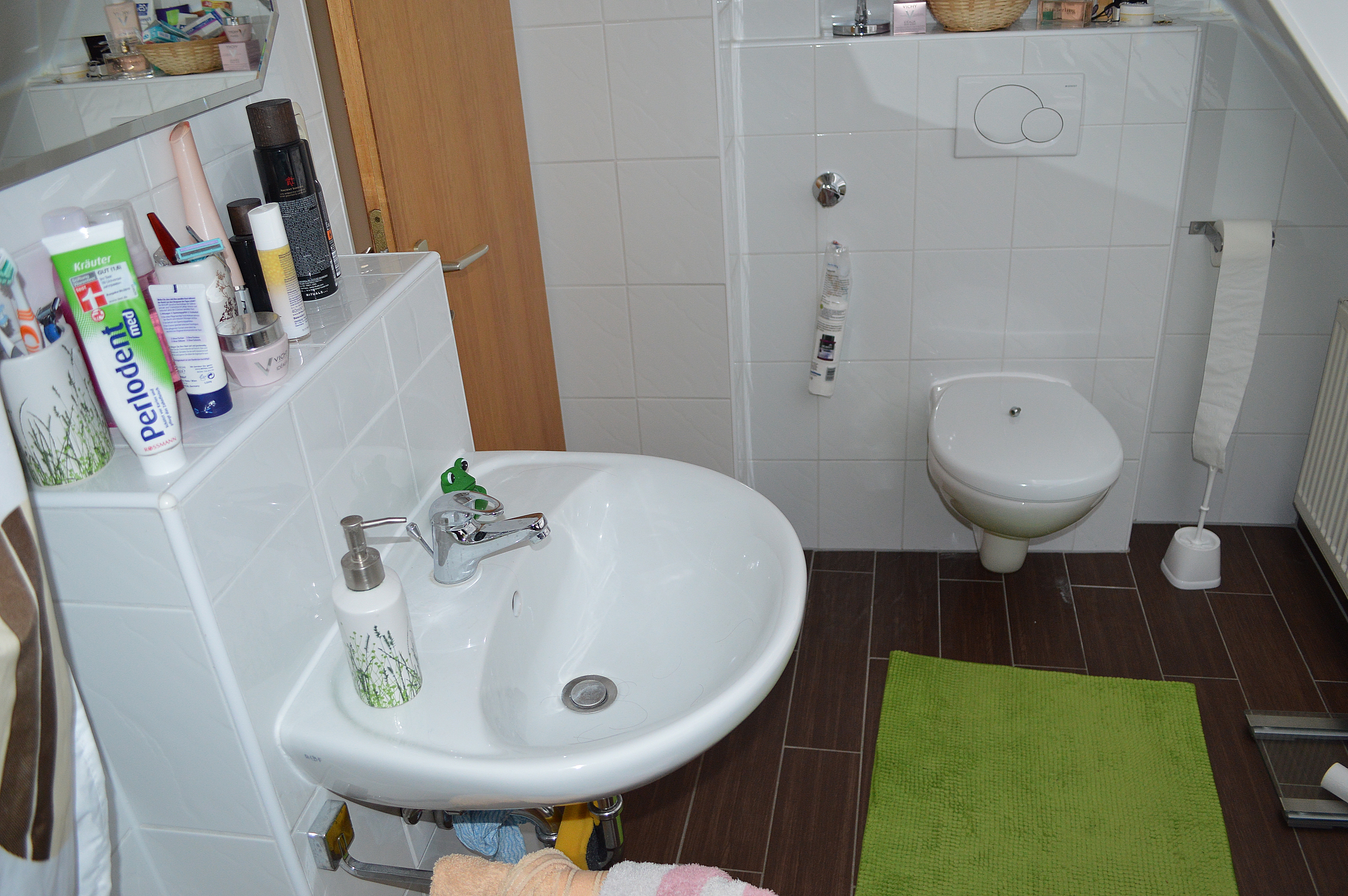 Dreifamilienhaus mit Kunststofffenstern 2 Zimmer zur variablen Verwendung mit Laminatboden bzw. Fliesenboden. Ein Zimmer hat einen großen Balkon. Vor der Wohnung steht ein kleiner Vorratsraum mit kleinem Dachliegefenster zur Verfügung. Küche Bad und Heizung WC ist im Badezimmer integriert Die Wohnung ist in gebrauchtem Zustand. Der neue Mieter tapeziert und streicht nach Bedarf selbst. sonstige Nutzflächen: abschließbares Kellerabteil, Fahrradabstellschuppen, Mini-Garten ca. 4 m² Sonstige Details: